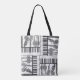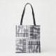 Cool black and white tote with a design inspired by the musical instruments of jazz.