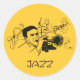 JAZZ musician with trumpet and musical notes Classic Round Sticker