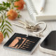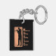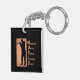 Black keychain with roughly drawn trumpet player. Peachy beige highlights and lettering that spells MUSIC vertically. A great gift idea for the musicians and music lovers in your life! Personalise text if you wish.