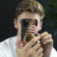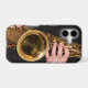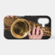 For music lovers! Protective and trendy phone case for the Apple iPhone and features a photo image of a jazzman playing his time-worn, gold colored, tenor saxophone horn. Select case for your iPhone model and select case style.