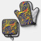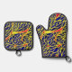 Brighten up your kitchen space with this oven mitt & potholder set with Jazzy design. Image created by artist Saudah.