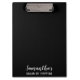 Step up your hairstylist game with this Jazzy Hairstylist Clipboard! This stylish and personalised clipboard features your name and business type beautifully printed on the front plus the eye-catching design on back showcases two white silhouette women's heads, each displaying different hairstyles, and glitter combs/brushes. Add a touch of elegance to the professional brand while staying organised and fashionable as your team is creating stunning hairdos for your clients. Get ready to turn heads in the salon with the Jazzy Hairstylist Clipboard!