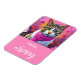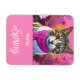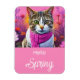 A vibrant spring Magnet with whimsical artwork. This charming tabby is wearing a magenta scarf, posing outdoors in a meadow with wild flowers in the background.Embracing a jazzy vibe with a cheerful "Hello Spring" note.