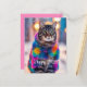 A dazzling New Year's postcard with playful artwork. Check out this groovy tabby showing the streets in a trippy fur coat, rocking a jazzy vibe with a "Happy 2026