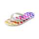 Kids flip flops with a surreal pattern of melting tropical stripes.