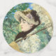 Jeanne (Spring). Edouard Manet . Portrait of a woman in green tones. There is a woman standing on a hillock with an umbrella in her hands and a cute hat. There are trees behind her. Reproduction of famous works of art images in the public domain.