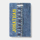 Classic design on denim background. Badges hold up well on luggage. They don't crack or break easily. Add your name, initials, etc. for personalisation.