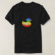 I give wanted to give this a 4 instead of a 5 because these Basic DARK T0shirts run unexpectedly SLIM or Narrow. Which is great if you do not have a potbelly, but I have a paunch. It isn't the shirt's fault that I've got a beer belly. The design and shirt itself is a quality cotton shirt. The color is more of a deep purple, but still a very pretty color. The Basic DARK T-shirts run a bit SLIMMER than the Basic Ts. The neck is a fraction narrower (or seems to be narrower) also. I'm a paunchy middle-aged woman and my neck is 12 inches (31cm) thick and the neckline fell about the same as in the photo of the man, and I had the desire to tug it a bit. So if you're a thick necked man or like loose shirts, be aware these are slimmer shirts. Once I get rid of my lockdown paunch it'll look great. The shirt washed well in cold water with no apparent bleeding. We don't have a dryer, so it hung dry. Did not shrink. Love the colors and the design. The design looks smaller on my shirt than it does on the model on-line. But still, it looks good on the shirt. The printing looks as it does on the model, just the size seems fractionally smaller. Washed garment in cold water, hung dry and design appeared unaffected.