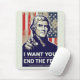 Reminiscent of the famous Uncle Sam "I Want You" image, Thomas Jefferson - a great enemy of central banking schemes - points to the viewer exclaiming "I Want You to End the Fed."