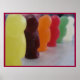 Jelly babies on parade, all lined up and looking at the camera. Great colourful poster that would grace anyone's wall.