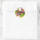 Pink, white, green and orange jelly beans provide a colourful background for this personalised birthday sticker.