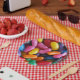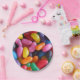 Paper plates featuring a photo of jelly beans.