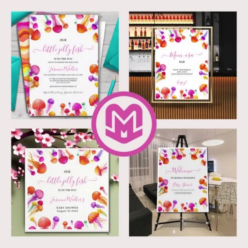 Jelly Fish Pink Yellow Gradient Pastel Baby ShowerDesigned by Max Marshall