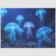 Craft paper/tissue paper with beautiful image of jellyfish swimming in the sea, in colours of blue and white.
