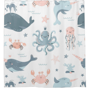 Pastel Ocean Life Shower Curtain