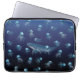 A illustration of a whale and jellyfish swimming in the depths of the ocean. A blue, marine themed Jellyfish pattern.