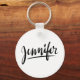 Jennifer keychain. Personalised round button gift key chain with the name for Jen. Custom presents for women and girls. Elegant hand lettered script typography design. Black and white handwriting artwork. Unique gift idea for mum, mother, sister, daughter, friend, wife, aunt, grandma, cousin, co worker etc.
