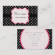 Black and white polka dots background. Black ribbon. Cute pink and light pink frame. Very girly, fashion, modern and professional.