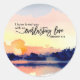 Inspirational quote scripture sticker depicts a watercolor painting with a beautiful orange, yellow and pink sunset over the water. It features an encouraging Bible Verse Jeremiah 31:3, "I have loved you with an everlasting love."