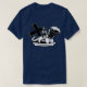 Ink drawing of Jesus riding upon the T-Rex behemoth, with a cross and, "Riiiiiiiiiiiiiiight." in a scroll banner. B/W, t-shirts, sweats, cards, gifts.