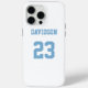 Add a name and number(s) to personalise this custom white and light blue sports jersey inspired phone case. It is an excellent gift for a sports fan or athlete. The options to change the colour and font sizes are available.