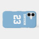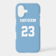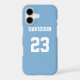 Add a name and number(s) to personalise this custom light blue and white sports jersey inspired phone case. It is an excellent gift for a sports fan or athlete. The options to change the colour and font sizes are available.