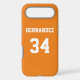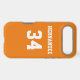 Add a name and number(s) to personalise this custom orange and white sports jersey inspired phone case. It is an excellent gift for a sports fan or athlete. The options to change the colour and font sizes are available.