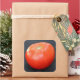 Fresh, red, ripe jersey tomato placed conveniently on a sticker.