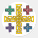 A celtic knotwork cross surrounded by four smaller crosses. The large cross represents Jerusalem, and the four smaller crosses are the four corners of the world.