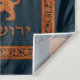 A digital "carved wood sign" celebrating Jerusalem Day. It features a lion, the official emblem of the city of Jerusalem, holding a flag of Israel. Hebrew text reading, "ירושלים" (Yerooshalayim - Jerusalem) appears below the lion. There is also a "carved" floral border. The border is based on beams found in Jerusalem which may have been used in the Second (Herod's) Temple.
