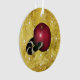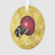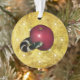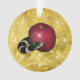 Representing Adam and the Garden of Eden, this ornament's golden background highlights a red apple and a black and white serpent. Reverse is golden with white geometric snowflake design.