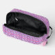 Pretty decorative letter J personalised girls name bag in shades of purple and pink use for toiletries or as a pencil or art supplies case. Customise with your own name beginning with J reads Jessica Wealthy, blessed. Intuitive, highly treasured. Background colour can also be changed to your own colour choice currently light pink. A perfect gift for girls and teens to take camp or to school. © Original sketched monogram art and design by Sarah Trett www.sarahtrett.com exclusively for www.mylittleeden.com