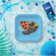 Cute ladybug ready for April Fools Day with orange wings and a colourful jester hat.