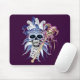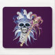 Mardi Gras style Jester skull with New Orleans style mask is holding a gold skull Jester sceptre.