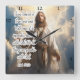 This spiritual clock features a serene depiction of Jesus Christ looking heavenward, enveloped by radiant light and clouds. Overlaid on the left, an inspiring quote from "Mark 10:27" reads: "Jesus looked at them and said, With man it is impossible, but not with God: For all things are possible with God". The design combines divine presence with practical timekeeping, symbolising eternal hope and possibility.