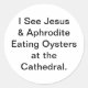 I See Jesus and Aphrodite Eating Oysters at the Cathedral. Comic Splash-Art Sticker-Design by Jeff Hankamer at Artjunkhaus