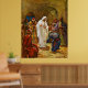 This image is a traditional religious painting or illustration depicting a scene where a figure, widely recognized as Jesus Christ, appears to a group of individuals. The central figure stands prominently in a bright, white robe, emanating a sense of light or presence. Around him are several figures, appearing to be men wearing robes and head coverings typical of the biblical era. Some are standing and looking towards the central figure, while one figure is shown kneeling in the foreground, reaching out or bowing in reverence. The scene takes place in an interior setting with arched architectural elements and warm, dramatic lighting. The artwork employs a classical painting style with realistic figures and rich colors to convey the solemnity and spiritual significance of the event.