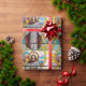 Jesus Arms Open Colourful Stained Glass Behind Him colourful personalised Christmas wrapping paper. Whether you use this wrapping paper for Christmas or just to show your faith, it's certain to make an impression. See more wrapping paper and everything you need for your gift presentation in our store at zazzle.com/TheRightNote.