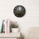 Bring a high-energy and powerful focal point of faith into your home with this realistic Calvary-themed wall clock. The central face features a high-definition graphic of three silhouette crosses atop a rocky, grass-covered hill under a dramatic, cloud-filled sky illuminated by a distant sunset glow. While the artwork masterfully mimics the textured depth of a natural landscape and the outer rim appears to be crafted from weathered, dark-stained timber, this is a lightweight and durable graphic timepiece rather than actual wood or stone. The elevated, golden-style numeric markers provide a professional and polished contrast against the atmospheric backdrop, ensuring the time is easy to read at a glance. This timepiece serves as a sophisticated addition to a study or living area, making it a perfect and meaningful self-gift for those who value high-quality spiritual art.