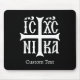 Stylised letters and cross symbolise the triumph of Christ over death and sin. Vector monochrom icon with customisable colour. Custom background colour. Custom text.
