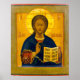 Ancient Russian icon of Jesus Christ Pantocrator (ruler of the Universe) in the Byzntine / Greek style. A classic Eastern Orthodox theme. The most common translation of Pantocrator is "almighty" or "all-powerful". Painted on a wooden panel with gold leaf. His hand in benediction, holding the Gospel (in cyrillic). His name is written on each side of the halo, as IC and XC On journals, shirts, key rings, charms, pillows, etc. For some reason, the notebook/journal is very popular.