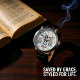 A stunning portrayal of Jesus crucified on the cross, depicted in a shining gold colour. The figure is solemn and expressive, showcasing powerful imagery associated with sacrifice and redemption.
