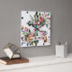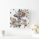 This charming square wall clock features an ornate teal cross adorned with a delicate pink bow and surrounded by a lush arrangement of colourful flowers, including pink roses and blue tulips. A steaming cup with a heart design and the inspiring phrase "Jesus fills my Cup" completes this serene and uplifting spiritual piece.