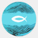 Jesus Fish Christian symbol on abstract blue wavy waters.