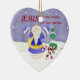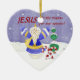 A wonderful to keep the focus of the season where it belongs! The art used to create this whimsical and yet meaningful Christmas ornament was created from hand watercolored paintings by Audrey Jeanne Roberts. This ornament has a worshiping snowman, snow covered tree and a pair of candy canes standing in the snow. Snow is falling in a blue sky and the text reads "JESUS is the reason for our season!" on the front. On the reverse side, the snow falling and a large snowflake with your family name and year. Celebrate the holidays with great cheer! Truly a wonderful and memorable gift to treasure for a lifetime!