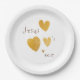Jesus loves me. gold hearts. modern Paper Plates. celebration party supplies paper products. gift. classroom. school. church. bible school. preschool. religious. christian. baptism. christening. baby shower