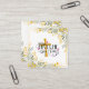 Inspirational business card features the beloved Christian hymn "Jesus Loves Me this I know" written on a gold cross with pink hearts. It's surrounded by a frame with simple watercolor gold and grey flowers and leaves.