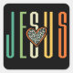 Jesus Loves Retro Heart Square Sticker