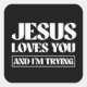 Jesus Loves You and I'm Trying Square Sticker