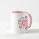 Cute Jesus love you mug with conversational candy hearts and rainbows. Pastel colors